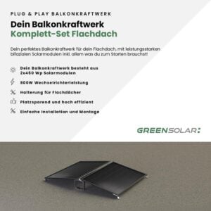Balkonkraftwerk Flachdach 900/800 black Doppelmontage