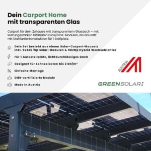 Carport 1 Stellplatz Glas/Glas – 2kn – 3,78kWp inkl. 10kWp Hybrid WR