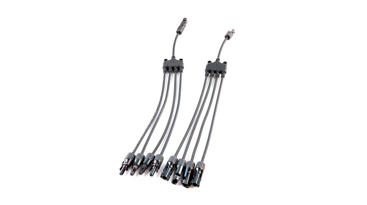 Dieser PV-Parallelstecker ermöglicht es vier PV-Module an den Wechselrichter gleichzeitig anzuschließen, um höheren Solarstrom zu generieren. Mit der Installation von 4 PV-Modulen generierst du deutlich mehr Leistung als nur mit einem. Die Verbindung zwischen den Modulen, dem Parallelstrecker und dem Wechselrichter erfolgt ganz einfach mittels standardisierten MC-4 Steckverbindungen.