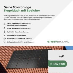 Solaranlage Ziegeldach 10kWp mit Speicher 11,52 kWh