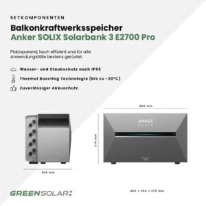 Solarkraftwerk Basic 1160/800 silver bifazial mit Balkonkraftwerkspeicher 2,7kWh „Anker SOLIX Solarbank 3 E-2700 Pro“