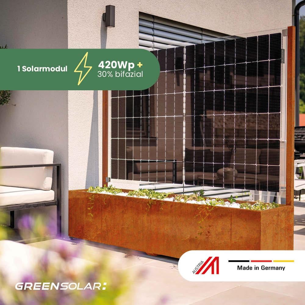 Das Set beinhaltet einen robusten Pflanzkasten aus hochwertigem Cortenstahl, ein leistungsstarkes 420Wp bifaziales Solarmodul und einen effizienten 400W Micro-Wechselrichter (HM-400). Du kannst mehrere Pflanzkästen miteinander verbinden, um die Energieerzeugung zu steigern. Die vormontierten Anschlusskabel und der Netzstecker für die Steckdose sorgen für eine einfache Installation. Der Cortenstahl sorgt für eine lange Lebensdauer und eine ansprechende Patina, die das Produkt im Laufe der Zeit noch einzigartiger macht – regelmäßige Reinigung sorgt für anhaltend schöne Optik und Funktionalität.